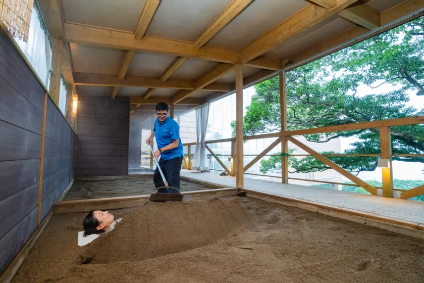 - 指宿ならではの温泉や砂蒸し風呂に加え、岩盤浴にセラミックスパなど、 心身ともにリフレッシュできるサービスを各種取り揃えております。  ̄ ̄ ̄ ̄ ̄ ̄ ̄ ̄ ̄ ̄ ̄ ̄ ̄ ̄ ̄ ̄ 下記サービスは全てご宿泊代金に含みます。 ・砂蒸し風呂 ・貸切露天風呂 ・貸切内風呂 ・セラミックスパ ・岩盤浴 ・インフィニティプール ・フィットネスジム ・ライブラリー ・室内冷蔵庫内のドリンク(室内ワインセラーのワインは別料金)
